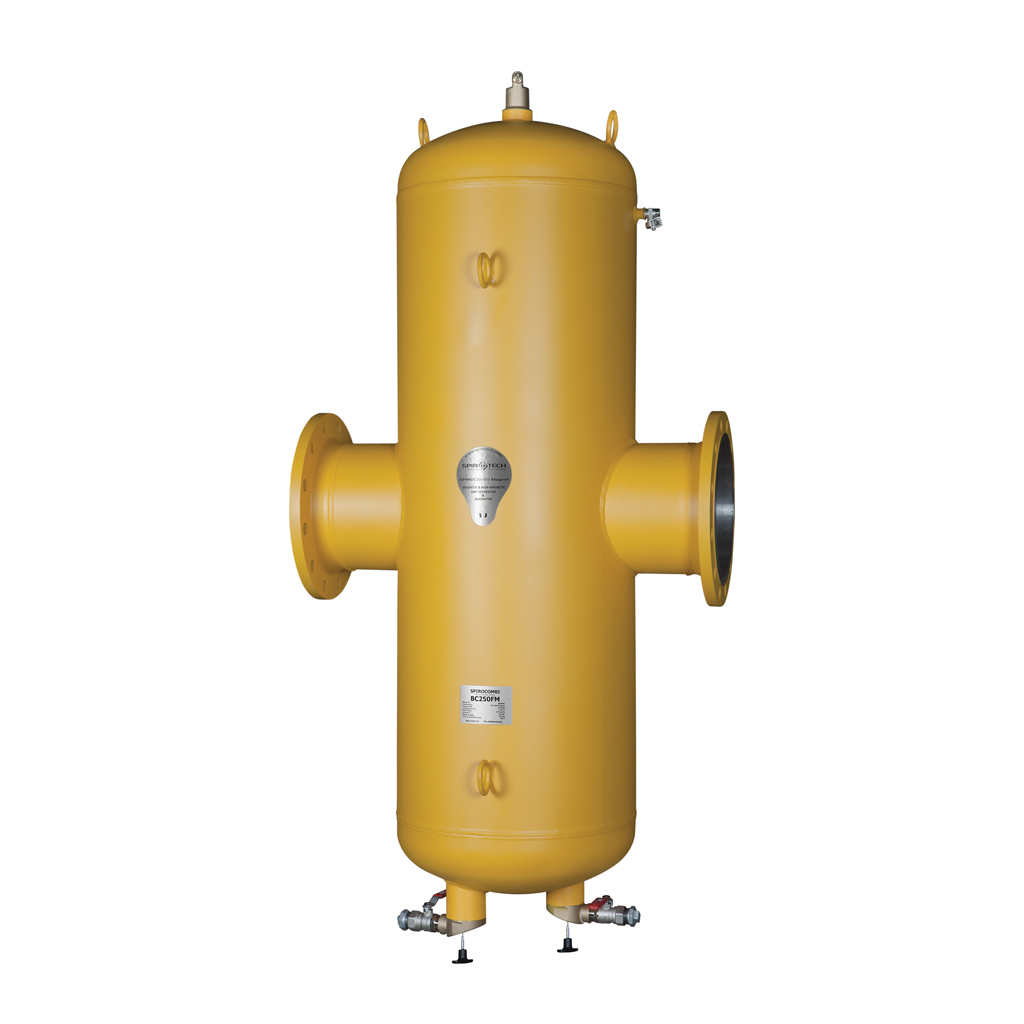 Til bruk i varme- og kjøleanlegg med inntil 40% glykol. Kombinert mikroboble- og magnetittutskiller for montering på horisontale rørstrekk. Fjerner effektivt mikrobobler og magnetiske og ikke-magnetiske partikler ned til 0,005mm i vannbårne varme- og kjøleanlegg. Enheten har en magnetstav som under drift står montert tørt i vannstrømmen. Ved gjennomspyling trekkes magneten ned uten å demonteres, slik at magnetiske partikler faller til bunn i enheten. Gjennomspyling utføres uten driftsstans.